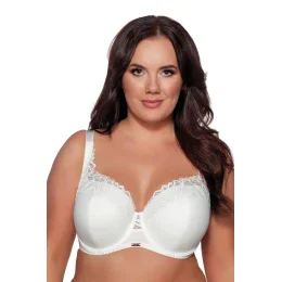 Biustonosz usztywniony, miseczki utrzymują piersi w swoich ryzach, zbierając je spod pach i solidnie podtrzymując. Dzięki elastycznemu obwodowi i dopasowanym ramiączkom biustonosz utrzymany jest stabilnie w odpowiednim miejscu, nie nadwrężając przy tym pleców i ramion. Koronka utrzymana w roślinnym motywie urokliwie wykańcza miseczki, pnąc się po ramiączku ku górze i prześwitując zalotnie w mostku, a metalowe logotypy AVA ulokowane z przodu i z tyłu dodają Yasemin odrobiny blasku.