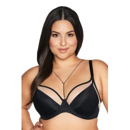 Košíčky v tvare braletky voľne obopínajú oblosť pŕs, poskytujú im jemnú oporu a udržiavajú ich v správnej polohe. Čierny úplet strednej časti podprsenky dokonale kontrastuje s tylom telovej farby, ktorý jemne odhaľuje pokožku a dodáva celku jemný tón.