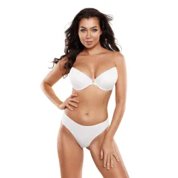 Elegantná biela podprsenka so silikónovým, priehľadným zadným dielom - ideálna do kombinácie s oblečením s odhaleným chrbtom. Zaručí vám vynikajúci vzhľad a pohodlie. Podprsenka je vybavená vyberateľnými push-up vypchávkami a odnímateľnými silikónovými ramienkami. V sade so šnúrkami V-5778.