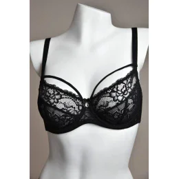 Táto zmyselná mäkká podprsenka je celá vyrobená z čipky, ktorá jej dodáva jedinečný ženský nádych. Výstrih zdobia ozdobné ramienka, ktoré sa dajú nastaviť vďaka praktickému pútku na ramienka - to zaručuje dokonalé prispôsobenie a dodáva moderný nádych. Prsník, ktorý je tiež vyrobený z čipky, zvýrazňuje eleganciu modelu a bočné veľrybích kostice poskytujú dodatočnú oporu a pohodlie. Zadná časť je vyrobená z elastického mikrovlákna pre pohodlné celodenné nosenie. Podprsenka je určená pre menšie a stredné poprsie.
