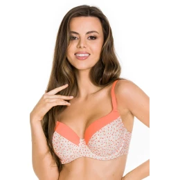 Konštrukciu košíčkov tvorí sieťovina, ktorá nadnáša a udržuje poprsie. Vonkajšia časť košíčkov je pokrytá mikrovláknom s farebným vzorom. Vrchnú časť košíčkov tvorí neónové mikrovlákno a spodnú časť zdobí jemná potlač s neónovým akcentom. Dĺžku ramienok je možné nastaviť. Podprsenka sa zapína na chrbte pohodlným klipsom. Na vytvorenie pekného kompletu odporúčame komfortné plavkové nohavičky s nariasením v páse.