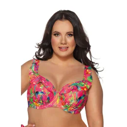 SK 192 má veľa dievčenského šarmu. Mäkké košíčky s jemným nariasením na spodnej strane tvarujú prsia a stabilne ich podopierajú, zatiaľ čo pôvabné volániky koketne obopínajú dekolt a šikovne zakrývajú prípadné disproporcie. Bikiny SF 192/11/B s nariasenými bokmi dotvárajú vzhľad a farebná kvetinová potlač, ktorá ich celé pokrýva, je pútavá a vyčarí vám úsmev na tvári.