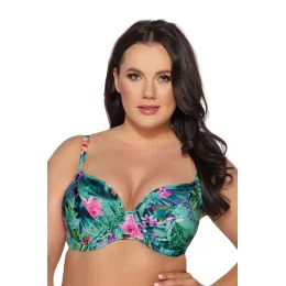 Leto je v plnom rozkvete, preto sa rozhodnite pre kvetinový vzor SK 206! Mäkká podprsenka sa voľne prispôsobí tvaru vašich pŕs a zabezpečí prirodzený tvar, zatiaľ čo elastický pás a široko strihané ramienka nadvihnú a stabilizujú poprsie na správnom mieste a poskytnú pohodlnú oporu. Farebne zladené plavky SF 206/3 s riaseným panelom na zakrytie nedokonalostí opticky zoštíhlia vašu siluetu a vyvážia telo.