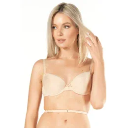 Push-up podprsenka, hladké košíčky z mikrovlákna, odnímateľné a nastaviteľné ramienka, krížové zapínanie na bruchu.