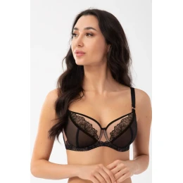 Měkká podprsenka určená pro ženy se středně velkými, velkými a velmi velkými prsy. Zajišťuje efekt silného zvednutí a shrnutí poprsí dovnitř, třídílné košíčky ze stabilního tylu a výšivky. Horní okraj košíčků zakončený lesklou páskou, plynule přechází v ramínka způsobující lepší oporu poprsí. Zadní část z průhledné lycry zajišťující velmi dobré přizpůsobení a oporu. Boční velurové kostice zabraňující shrnování látky. V závislosti na velikosti dvouřadé nebo třířadé háčky s třístupňovou regulací obvodu. Neodnímatelná, nastavitelná ramínka ve třech šířkách, u větších velikostí navíc vyztužená velurovou páskou. Kovové prvky v barvě růžového zlata (neobsahují nikl)