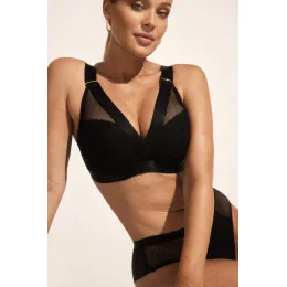 Mäkké košíčky zo sieťoviny sú podšité tenkou hubkou. Výstrih, ramienka a spodný okraj modelu tvorí široká pružná guma. Ramienka majú vo prednej časti štvorstupňovou možnosť nastavenia dĺžky. Vďaka dokonalému strihu a konštrukcii podprsenka stabilne nadnáša poprsie a poskytuje mu oporu aj pri intenzívnej fyzickej námahe a aktivite.