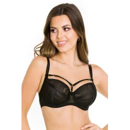 Konštrukcia modelu je stabilná a ľahká. Košíčky sú vyrobené z dvoch vrstiev čierneho tylu. Strih košíčkov s čiernym prešitím dodáva celému modelu zmyselnosť. Celkový vzhľad podprsenky dotvára pásky vo výstrihu, ktoré je možné nastaviť a odopnúť. Háčiky a regulátory v zlatej farbe dodávajú podprsenke eleganciu. Model je vhodný pre takmer každý typ poprsia.