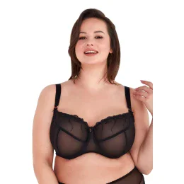 Mäkká podprsenka s kosticami, sieťované košíčky, vyšívaný vrchný diel.