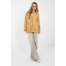 Ležérne dámske sako vyrobené z kvalitnej bavlny, ideálne na každodenné štylizácie. Džínsový materiál mu dodáva uvoľnený charakter, ale zároveň robí model nadčasovým a univerzálnym. Sako má štandardnú dĺžku, dlhé rukávy a klasický golier. Jedinečným prvkom sú vyšívané kvety umiestnené na prednej strane, ktoré celku dodávajú ženský a originálny vzhľad. Model sa zapína na gombíky, je vybavený praktickými vreckami a spája estetiku s funkčnosťou. Je skvelou voľbou na každý deň, výborne sa hodí k džínsom, ako aj k šatám alebo sukniam.