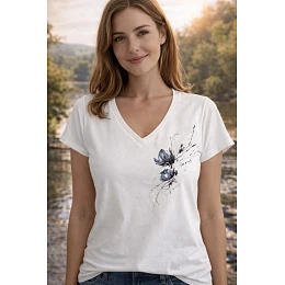 Táto dámska blúzka s krátkymi rukávmi je dokonalou kombináciou pohodlia a ženského štýlu. Je vyrobená z vysokokvalitnej tkaniny (95 % bavlna, 5 % elastan), ktorá poskytuje vynikajúcu priedušnosť a pružnosť, vďaka čomu sa dokonale prispôsobí postave. Výstrih do V jemne zvýrazňuje dekolt a dodáva celému stylingu ľahkosť. Jemná kvetinová potlač dodáva blúzke romantický charakter a mierne rozšírený strih krásne zvýrazňuje ženské krivky. Táto blúzka je vynikajúcou voľbou na každodenné nosenie, ako aj na stretnutia alebo letné výlety. Blúzka sa hodí k džínsom, šortkám a sukniam, čím vytvára módne a pohodlné komplety.