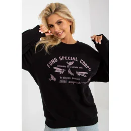 Dámska mikina s dlhým rukávom, zastrčená cez hlavu. Zaujímavá potlač na prednej strane.
