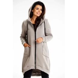 Naša dlhá mikina je kombináciou štýlu a pohodlia. Je vyrobená z mäkkej bavlnenej mikiny a zaručuje odolnosť a pohodlie v dĺžke po kolená. Kapucňa vás ochráni pred nepriaznivým počasím, zips uľahčuje obliekanie a rebrovaný lem zaručuje dokonalé prispôsobenie. Priestranné vrecká zvyšujú funkčnosť. Je ideálnou voľbou pre tých, ktorí si cenia pohodlie a štýl na každý deň. Navrhnuté a ušité v Poľsku.