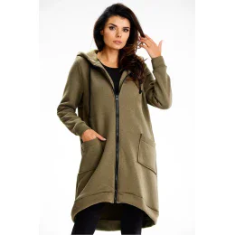 Naša dlhá mikina je kombináciou štýlu a pohodlia. Je vyrobená z mäkkej bavlnenej mikiny a zaručuje odolnosť a pohodlie v dĺžke po kolená. Kapucňa vás ochráni pred nepriaznivým počasím, zips uľahčuje obliekanie a rebrovaný lem zaručuje dokonalé prispôsobenie. Priestranné vrecká zvyšujú funkčnosť. Je ideálnou voľbou pre tých, ktorí si cenia pohodlie a štýl na každý deň. Navrhnuté a ušité v Poľsku.