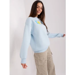 Svetlomodrá mikina s kapucňou a nápisom .