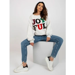 Svetlosivá voľná mikina s kapucňou a nápisom.