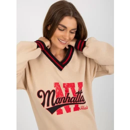 Béžová dámska mikina s nápismi a výstrihom do V.