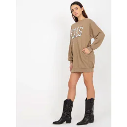 Tmavobéžová dlhá mikina s potlačou a vreckami.