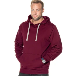 Pánska mikina s kapucňou ušitá z mäkkého materiálu. Vo vnútri je materiál česaný. Mikina má vrecko klokanku a kapucne je podšitá materiálom single jersey. Kapucňa má reguláciu šnúrkou. Rukávy a spodný okraj sú obšité dvojvrstvovým lemom s elastanom. Krk a ramená sú spevnená stabilizujúcim pruhom látky, ktorý má vplyv na trvanlivosť švov.
