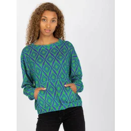 Zelenomodrá velúrová mikina s potlačou RUE PARIS.