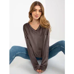 Tmavosivá velúrová mikina s kapucňou a véčkovým výstrihom.