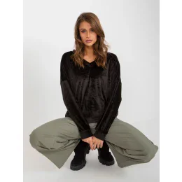Čierna velúrová mikina s kapucňou a výstrihom do V.