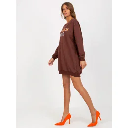 Tmavohnedá dlhá mikina s potlačou .