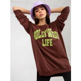 Tmavohnedá a zelená dlhá oversize mikina s nápisom .