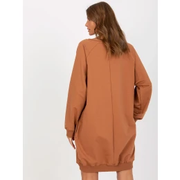 Svetlohnedá dlhá mikina s aplikáciou a nápisom.