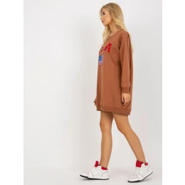 Svetlohnedá dlhá mikina s potlačou a aplikáciou .