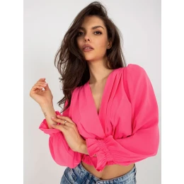 Fluo ružová spoločenská blúzka s buffovými rukávmi.