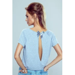 Očarujúca sivá blúzka s krátkymi rukávmi a zvodným rozparkom na chrbte. Vrchná časť zvýraznená malou, sladkou saténovou mašľou. Mäkká a kvalitná tkanina. Zloženie: 95 % viskóza, 5 % elastan.