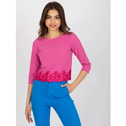 Ružová spoločenská blúzka s ozdobným lemovaním.