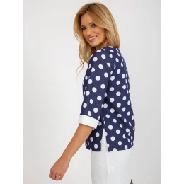 Tmavomodrá hrášková blúzka s 3/4 rukávmi .