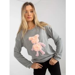 Šedý dámsky klasický sveter s 3D aplikáciou.