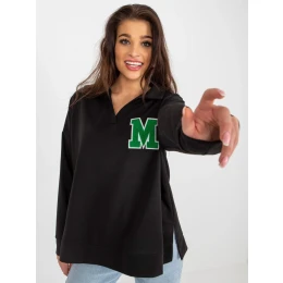 Čierna bavlnená blúzka nadmernej veľkosti s aplikáciou .