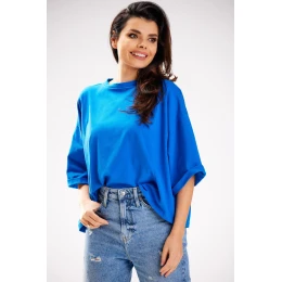 Voľná blúzka so širokými rukávmi a okrúhlym výstrihom, dostupná v 6 farbách: biela, mentolová, žltá, čierna, ružová a fialová. Navrhnutá a vyrobená v Poľsku.