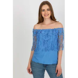 Letná blúzka s výstrihom v španielskom štýle. Blúzka zdobená ozdobnou čipkou so strapcami.