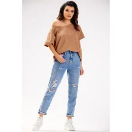 Voľné tričko s hlbokým výstrihom a lodičkovým výstrihom, ktorý sa dá pretiahnuť cez jedno rameno a vytvoriť tak rôzne štýly. Vyrobené v Poľsku.