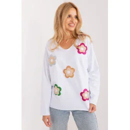 Představujeme jedinečnou halenku pro volný čas, která dokonale kombinuje pohodlí a styl. Tento oděv je ideální pro každodenní nošení a zároveň poskytuje decentní ležérní vzhled. Halenka zaujme svým převládajícím vzorem, přičemž přední stranu zdobí půvabné květy, které celému vzhledu dodávají lehký a svěží nádech. Tyto aplikace dělají z halenky nejen oděv, ale také vyjádření individuálního stylu. Halenka je vyrobena z vysoce kvalitní bavlny, která zaručuje maximální pohodlí při nošení. Díky použitému materiálu je oděv měkký, prodyšný a ideální pro různá roční období, což poskytuje příjemný pocit i při dlouhodobém nošení. Díky standardní délce halenky a dlouhým rukávům je skvělou volbou pro nejrůznější příležitosti ? ať už na setkání s přáteli, běžné nákupy nebo relaxační procházku. Výstřih do V dodává halence lehkost a jemnou eleganci, což z ní činí dokonalý kousek šatníku pro každou ženu