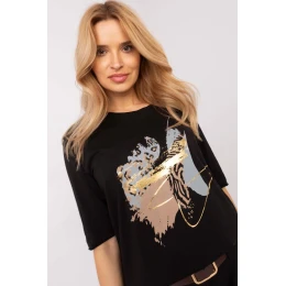 Elegantná blúzka štandardnej dĺžky na každodenné nosenie vyrobená z mäkkej bavlny s prídavkom elastanu pre pohodlie a ideálny strih. Model s 3/4 rukávmi a okrúhlym výstrihom je univerzálnou voľbou na každú príležitosť. Dominantný vzor kombinuje potlač so zvieracím motívom na prednej strane, čo dodáva blúzke módny a výrazný charakter. Ideálna na ležérny štýl, hodí sa k džínsom, sukniam alebo elegantným nohaviciam.