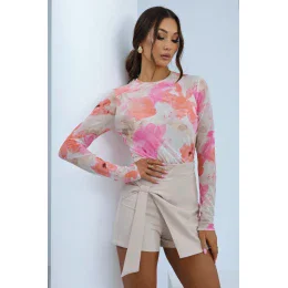 Týlová blúzka s dlhými rukávmi je jedinečným základom šatníka, ktorý v sebe spája ľahkosť a eleganciu. Je vyrobená z mäkkého materiálu, jemne zvýrazňuje postavu a dodáva outfitu decentný charakter. Okrúhly výstrih zaručuje klasický a univerzálny vzhľad a farebná potlač na materiáli jej dodáva originalitu a odlišnosť. Ideálna je na každodenné nosenie aj výnimočné príležitosti, hodí sa k elegantným sukniam a ležérnym džínsom.