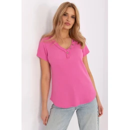 Prispôsobený top na každý deň v ležérnom štýle, ideálny na každý deň a do práce. Vyrobený z kvalitnej bavlny s prídavkom elastanu pre pohodlie pri nosení a ľahkú elasticitu. Hladký materiál s pozdĺžnou štruktúrou dodáva jemnú štruktúru a ozdobné gombíky sú štýlovým doplnkom. Top má štandardnú dĺžku, krátke rukávy a ženský výstrih do V, ktorý zvýrazňuje krk a dekolt. Dokonale sa prispôsobí postave a vytvára univerzálny kúsok oblečenia na mnoho príležitostí.