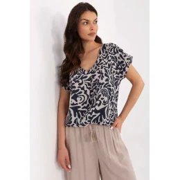 Táto dámska blúzka voľného strihu je skvelým každodenným dizajnom, ktorý spája pohodlie a štýl. Je vyrobená z prírodnej viskózy, je mäkká, priedušná a šetrná k pokožke, takže poskytuje pohodlie počas celého dňa. Blúzka má štandardnú dĺžku, krátke rukávy a výstrih do V, takže je vhodným doplnkom k mnohým každodenným štýlom. Vďaka absencii zapínania je jednoduchý, ale módny strih ideálnou voľbou k džínsom, šortkám alebo sukniam. Dôležité je, že výrobok patrí do kategórie ekologického oblečenia, čo znamená, že starostlivosťou o svoj módny vzhľad podporíte aj ochranu životného prostredia.