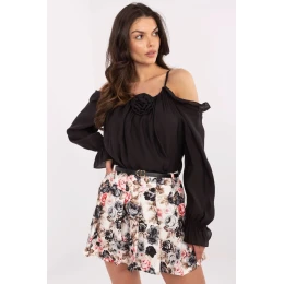 Jedinečná blúzka, v ktorej sa spája elegancia s jemným nádychom romantiky. Je vyrobená z príjemnej zmesi tencelu a polyesteru, vďaka čomu poskytuje pohodlie a jednoduché nosenie. Podšívka dodáva celku štruktúru a robí z blúzky dokonalý kúsok do každej situácie. Model v španielskom štýle mimo ramien krásne zvýrazňuje výstrih, zatiaľ čo ramienka a dlhé rukávy s volánikmi vytvárajú výrazný, ženský vzhľad. Vďaka hladkému materiálu a krátkej dĺžke sa blúzka dobre kombinuje s nohavicami aj sukňami. Ďalšou výhodou je ozdobná brošňa v tvare kvetu, elegantný detail, ktorý upúta pozornosť a dodáva oblečeniu jedinečný charakter. Je ideálnou voľbou na spoločenské stretnutia, do práce, na večierok alebo na každodennú elegantnú zábavu.