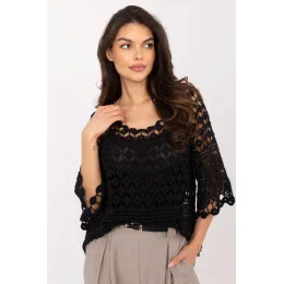 Dvojdielna súprava v boho štýle: ľahká, priesvitná bavlnená blúzka a priliehavý top na ramienka. Ideálna voľba pre ženy, ktoré oceňujú voľnosť, ženskosť a prírodné materiály. Blúzka má priesvitný vzor, ktorý jej dodáva romantický a éterický charakter. Je vyrobená z priedušnej bavlny, má štandardnú dĺžku a 3/4 rukávy, takže je skvelým kúskom na teplé dni. Okrúhly výstrih zvýrazňuje dekolt a voľný strih zaručuje pohodlie. Súčasťou je elastický top na tenké ramienka, vyrobený z mäkkej viskózy s prídavkom elastanu, ktorý sa dokonale prispôsobí postave a zaručuje pohodlie počas celého dňa. Zloženie: Blúzka: 100% bavlna Top: 90% viskóza, 10% elastan