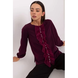 Elegantná blúzka štandardnej dĺžky vyrobená z kombinácie polyesteru, viskózy a elastanu poskytuje pohodlie a bezchybný vzhľad počas celého dňa. Hladká tkanina zdôrazňuje rafinovaný charakter modelu a zvislý volán na prednej strane zdobený drobnými korálkami dodáva blúzke jemný lesk a originalitu. Klasický okrúhly výstrih a dlhé rukávy dodávajú blúzke univerzálny, elegantný charakter. Bez zapínania sa model pohodlne nosí. Ideálna do práce aj na elegantné stretnutia.