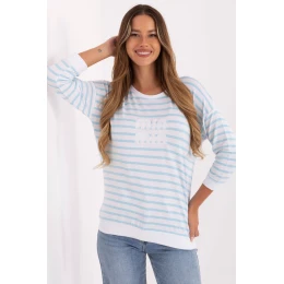 Ležérny dámsky top vyrobený z mäkkého mikromodalu s prídavkom elastanu pre pohodlie a dokonalé prispôsobenie. Vďaka klasickému okrúhlemu výstrihu a dlhým rukávom je model pohodlný a univerzálny, skvelý do práce aj na každý deň. Top štandardnej dĺžky zdobí jemný pruhovaný vzor a aplikácie na prednej strane mu dodávajú módny a moderný charakter. Model bez zapínania, ľahko kombinovateľný s inými kúskami oblečenia.