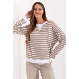 Tento ležérne ženský pruhovaný oversized top je pohodlným a módnym návrhom na každý deň. Je vyrobený z mäkkého mikromodalu s prídavkom elastanu, ktorý poskytuje pohodlie a voľnosť pohybu. Model so štandardnou dĺžkou, dlhým rukávom a klasickým okrúhlym výstrihom je zakončený lemami, ktoré dodávajú topu moderný charakter a jemne zvýrazňujú postavu. Ideálny na každodenný ležérny outfit, buď s nohavicami, alebo so sukňou.