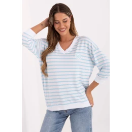 Tento dámsky pruhovaný top voľného strihu s aplikáciou vpredu je pohodlnou a štýlovou voľbou na každodenné príležitosti. Je vyrobený z mäkkého mikromodalu s prídavkom elastanu, čo zaručuje pohodlné nosenie a voľnosť pohybu počas celého dňa. Tento model so štandardnou 3/4 dĺžkou rukávov a výstrihom do V kombinuje klasický strih s moderným detailom aplikácie, vďaka čomu vyzerá skvele v každodenných štýloch s nohavicami aj sukňami.