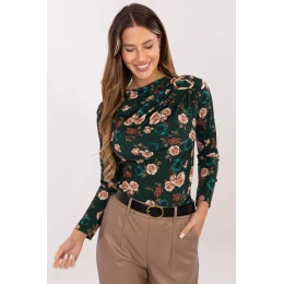Táto elegantná dámska blúzka so strihom na mieru je ideálnou voľbou do práce, na obchodné stretnutia aj na každodenné nosenie. Je vyrobená z príjemnej zmesi viskózy a polyesteru, ktorá spája pohodlie s odolnosťou. Kvetinový vzor jej dodáva ženský charakter, zatiaľ čo štandardná dĺžka a dlhé rukávy jej dodávajú eleganciu a nadčasovosť. Zvlnený výstrih sa krásne prispôsobí postave a jemné zhrubnutie na ľavom ramene, ozdobené kovovou sponou, je špeciálnym prvkom, ktorý podčiarkuje elegantný štýl blúzky. Model bez zapínania zaručuje pohodlie a voľnosť pohybu.